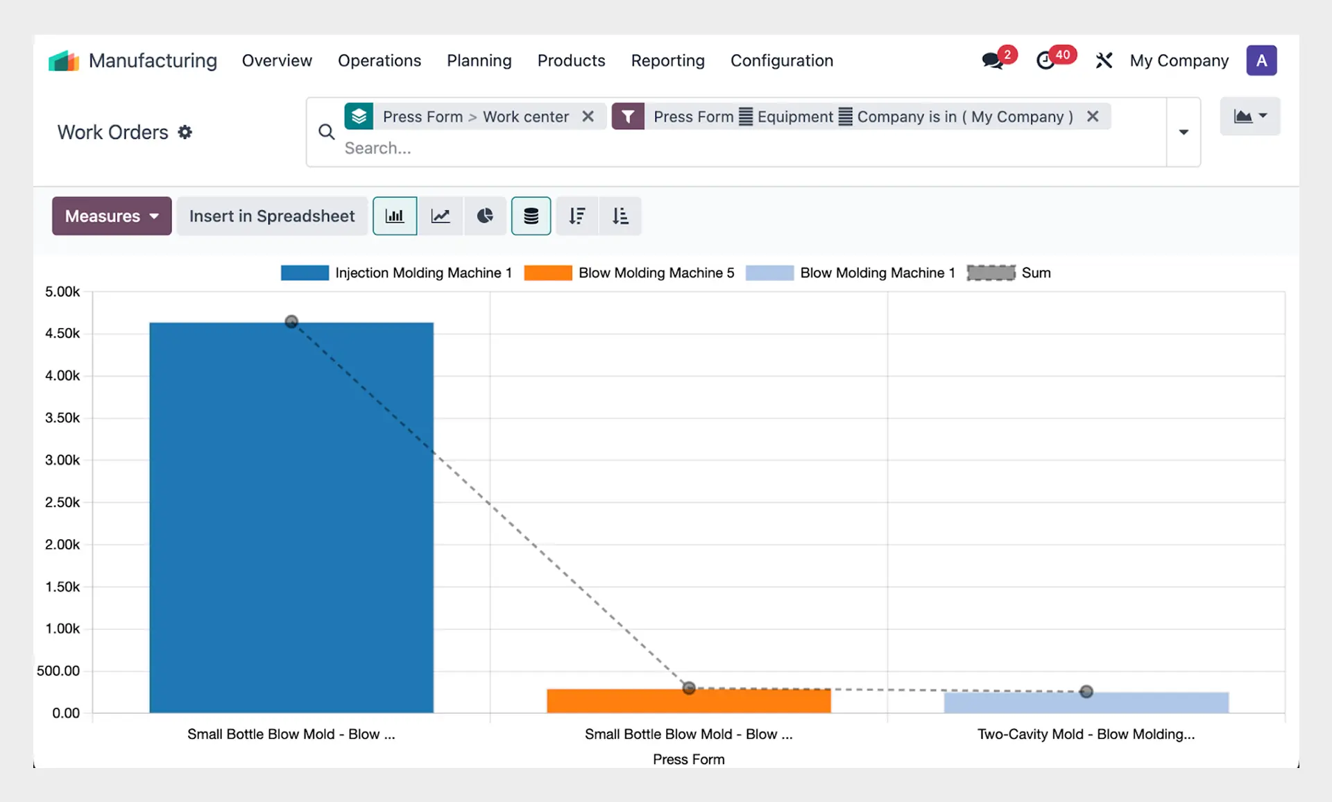 Assign a single mold to multiple work centers - such as blow molding machines, injection molding machines, extrusion lines, milling equipment, stamping machines, or casting units - for dynamic production workflows.