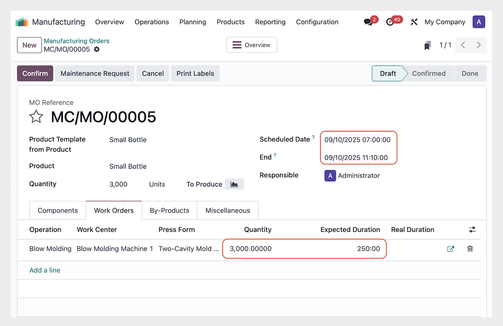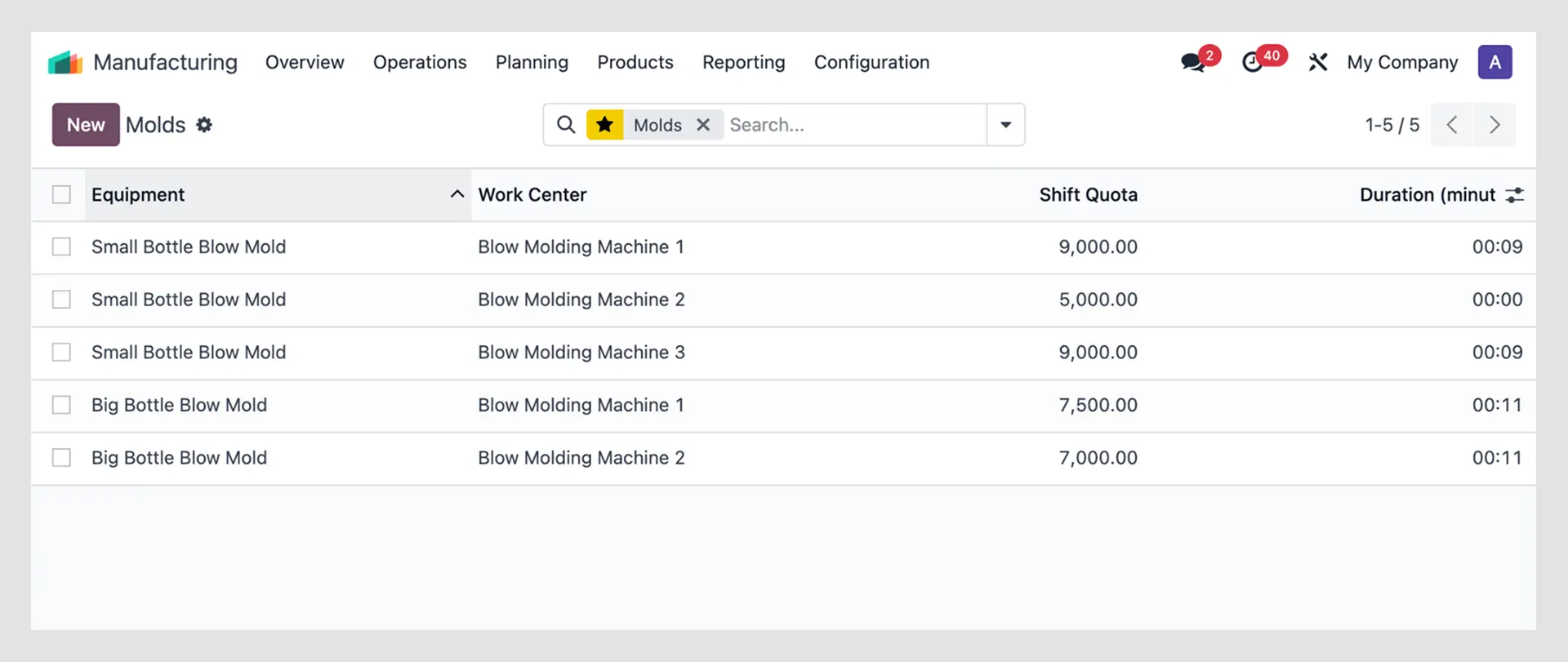 Link multiple molds to a product and have the correct mold automatically added to the Manufacturing Order - reducing manual entry and boosting accuracy.